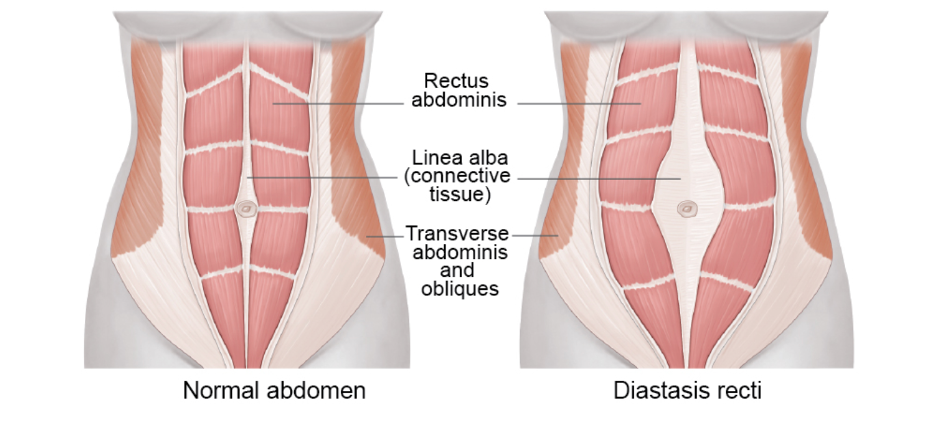 Diastasis recti abdominis (DRA) is the separation of the two halves of the rectus abdominis muscle along the linea alba—a connective tissue band down the middle of your abdomen. This separation happens when the tissue stretches and thins, often due to increased intra-abdominal pressure.